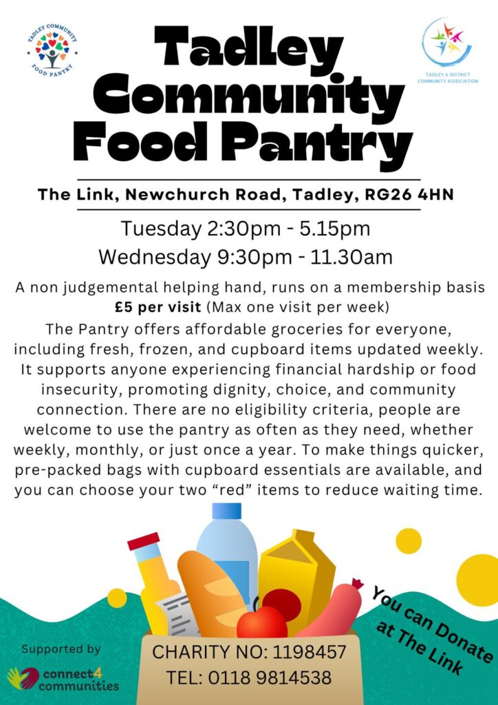 If you just need a little help but are not eligible for a food parcel from Basingstoke Foodbank, there is the Tadley Community Food Pantry available, details below: